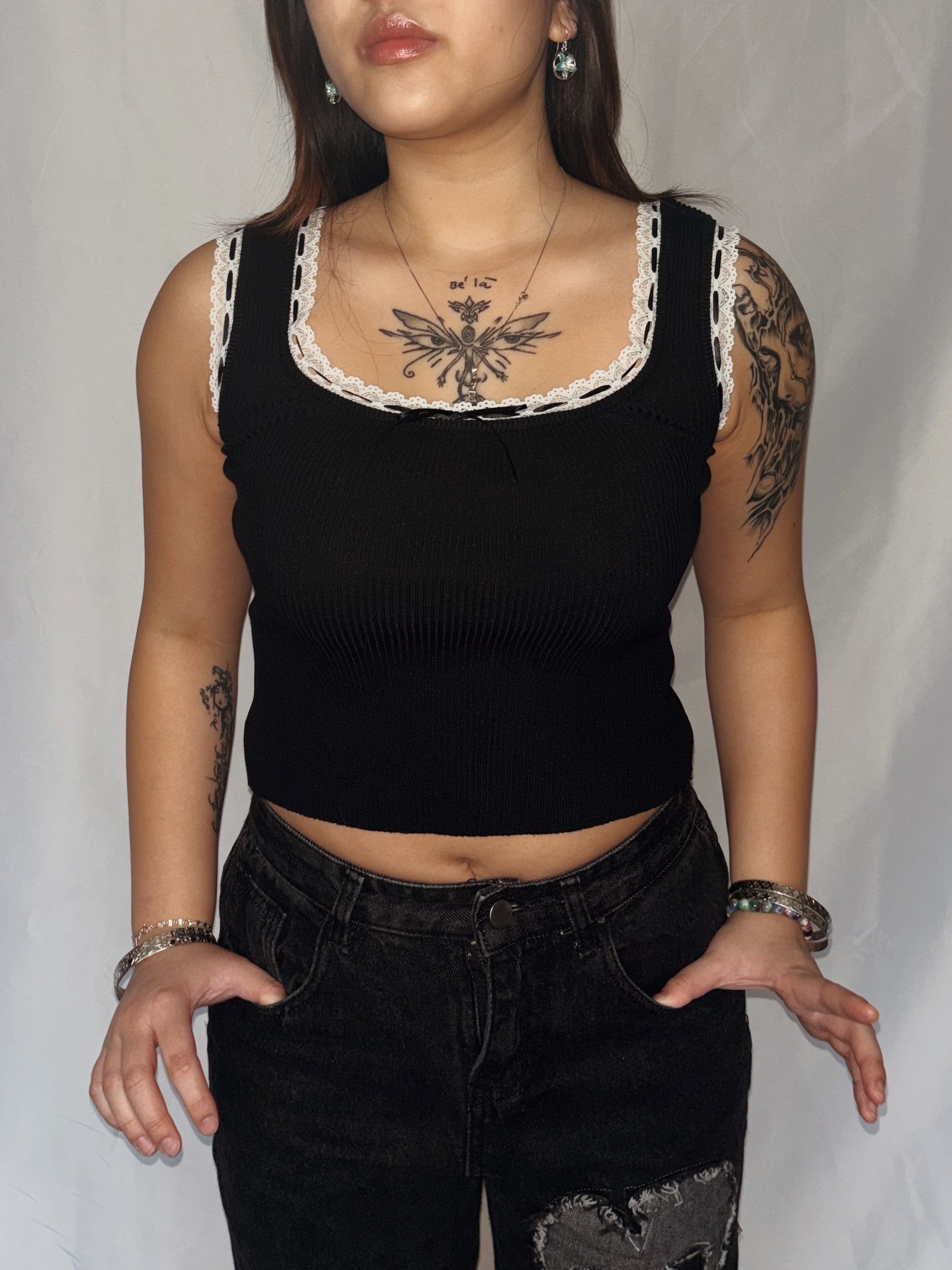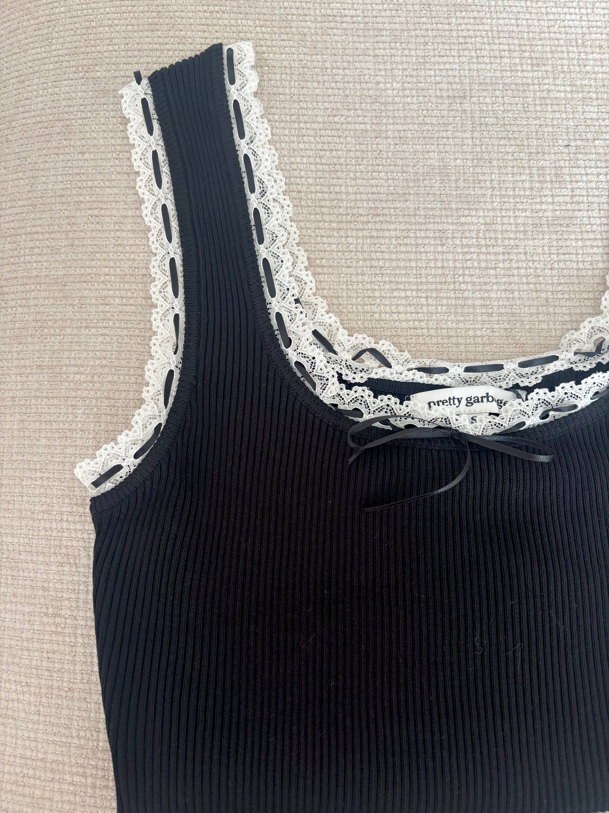 Our Ophelia Tank Top can be worn as a cozy lounging top, or you can dress it up as an undershirt paired with a jean jacket or cardigan. The lace detailing with the bow tie centerpiece makes this a dainty & stylish pick for your wardrobe!
